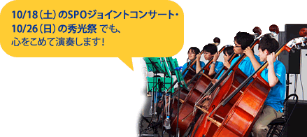 10月に行われる仙台フィルハーモニー管弦楽団(SPO)とのジョイントコンサート、秀光祭の告知がありました。【詳しくはこちら】また、現在ジョイントコンサートのために練習中の曲を少しだけお披露目するサプライズも…。