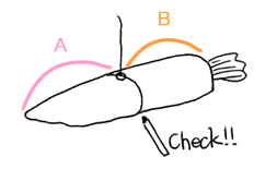 A(糸の結び目からの長さ)×ダイコンの重さ=偶力【しっぽ側】
