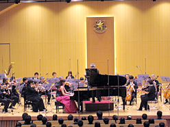 コンサートは仙台フィルハーモニー管弦楽団の皆さんのステージでスタート。2曲目の「コンサート・ロンド ニ長調(W.A.モーツァルト作曲)」では特別ゲストとして、ピアニストの松坂優希さんが登場し、演奏に華を添えてくださいました。
