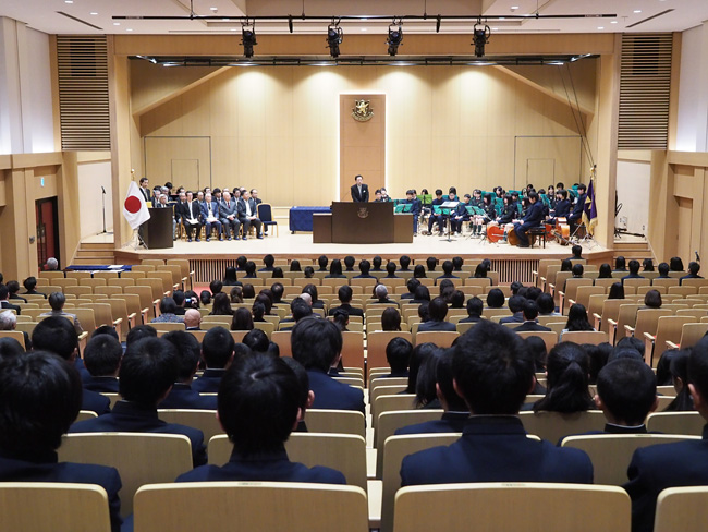 校長先生は式辞で、卒業生が4年生のときに初めて実施されたニューヨークを中心とした海外研修『NYSA(New York Shukoh Academy)』について「みなさんを成長させる大きな機会になったと感じています」と話されます。そして、海外の視点で日本が過去に行ったことを見つめなおすことなどが重要だとして「NYSAで研修した皆さんならば理解できるはずです」と卒業生に語りかけてくださいました。